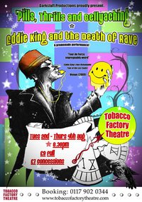 Oooo, stuff from the surprise box is always great, isn’t it? Just agreed to join the merry crew taking part in Darkstuff Productions’ “Thrills Pills and Bellyaching – Eddie King and the Death of Rave” at Bristol’s Tobacco Factory on Aug 2-4th at 8-30pm.