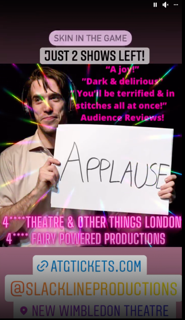 So, until then, here’s a few social media moments to make you smile… You can read more at Slackline Productions, and their socials, my Instagram, and on my theatrical facebook page. Reviews from critics and audiences will follow here when I catch my breath.